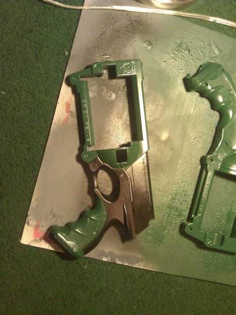 Dos, que se vea como debe estar allí! en la otra mitad de la pistola, hacer todo lo posible para replicar el mismo patrón de cinta y el cuchillo del exacto para limpiar las formas! Esto sucedió dos veces en mi arma y el resultado final parece clase de aseado!