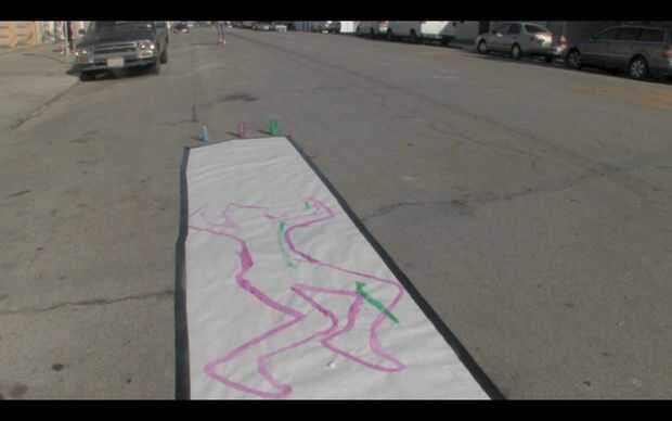 Para empezar a encontrar una colina de tamaño decente con no demasiado tráfico y establecen su papel, cinta adhesiva hacia abajo para que no se mueva cuando ruedas sobre él. Una vez que hayas hecho esto poner pintura en la parte inferior de tus jarras o tazas (no poner varios colores en una taza) luego se llenan de agua y revuelva. Poner los frascos en el frente del papel así que usted puede sumergir su cepillo mientras que monta. Su configuración debe parecerse esto cuando haya terminado.