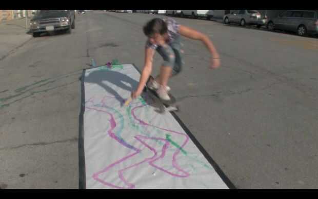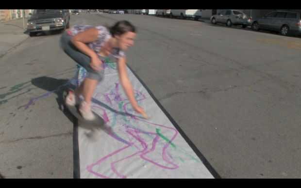 Una vez que han conseguido es balance correcto es hora de empezar a pintar! No se estrese usted mismo hacia fuera esto se supone que es una diversión excerise a conseguir su fluir de la creatividad y los músculos de la pierna fuertes! Siga tomando su tablero largo 3-5 pies lejos del papel y rodar por la pintura de la colina mientras ganando velocidad. Asegúrese de que saber cómo detener la placa si ganan demasiada velocidad para su gusto.