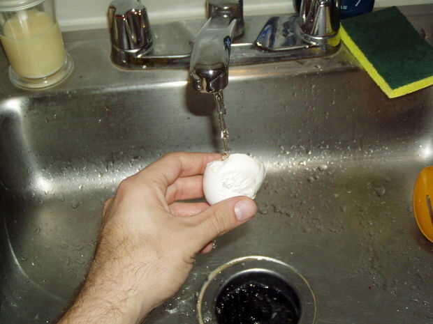 Me dijeron que la medida correcta es cáscara de huevo 1/2 de vinagre y 1/2 cáscara de huevo de agua. Lo hice con la cáscara del huevo, que se filtró el vinagre todo me. No hay sorpresa. La próxima vez usaré una cucharadita. Creo que la idea es cubrir un poco la parte superior de la yema, por lo que no está expuesta al aire.