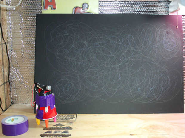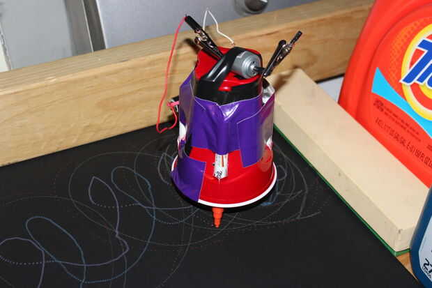 • Encontrar una buena ubicación para establecer su tablero de la espuma negra. Construir una barrera alrededor de la Junta (o área previsto ser el área de trabajo de la Junta) con el material elegido. Usé mi lavadora y unos 2 x 4 que tuve puesta alrededor.) Una vez que tenga un área segura puede dar rienda suelta a la bestia... Me refiero a bot; asegurándose de sacar de su boca... lo sentimos--Asegúrese de quitar las tapas de los marcadores.