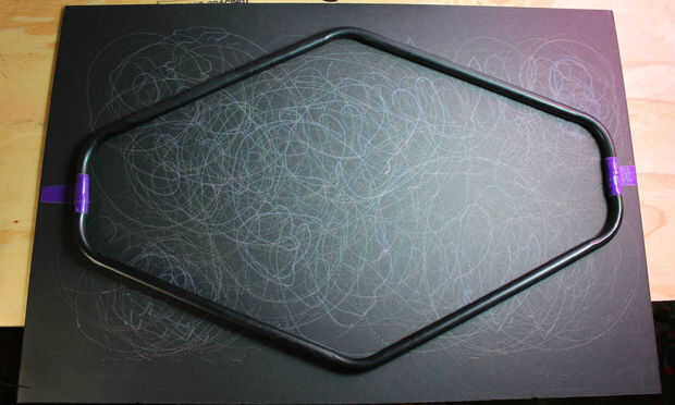 • Coloque el marco terminado sobre la parte de la Junta de espuma negra que tiene la parte más interesante de la expresión de robots de su no-alma. Mi robot es un artista abstracto, pero, tal vez, usted podría coaccionar (también conocido como programa) tuyo para más obras; las máquinas de los usuarios más avanzados son capaces de pintar la más cálida de amaneceres con fría precisión-