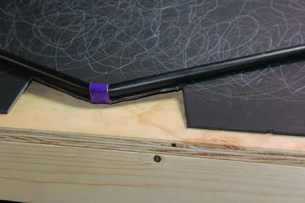 Escuchar paso: debe tener en cuenta que en el paso 6 se le pedirá a la cinta en el borde de la obra para garantizar que el marco. El tablero de la espuma va a marcar una costura que será cubierta por la cinta. La cinta irá a mitad de camino bajando por el lado de la estructura bajo el tablero de la espuma. Idealmente, usted quiere cortar la espuma en el borde del marco como cerca de lo que sería la parte superior del cilindro del bastidor.