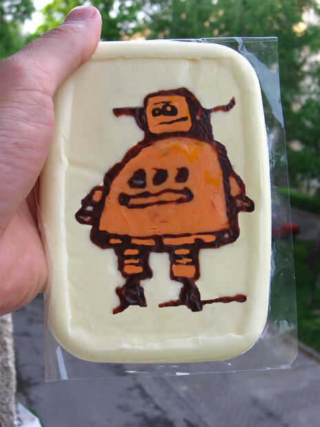 Pintura con chocolate es más o menos como pintura sobre un lienzo, es easer porque no necesita mucho más talento que traza y poco de paciencia.A diferencia de la pintura en un lienzo de pintura con chocolate le permite rastrear su dibujo y es como pi