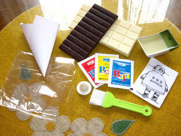 Pintura con chocolate es más o menos como pintura sobre un lienzo, es easer porque no necesita mucho más talento que traza y poco de paciencia.A diferencia de la pintura en un lienzo de pintura con chocolate le permite rastrear su dibujo y es como pi