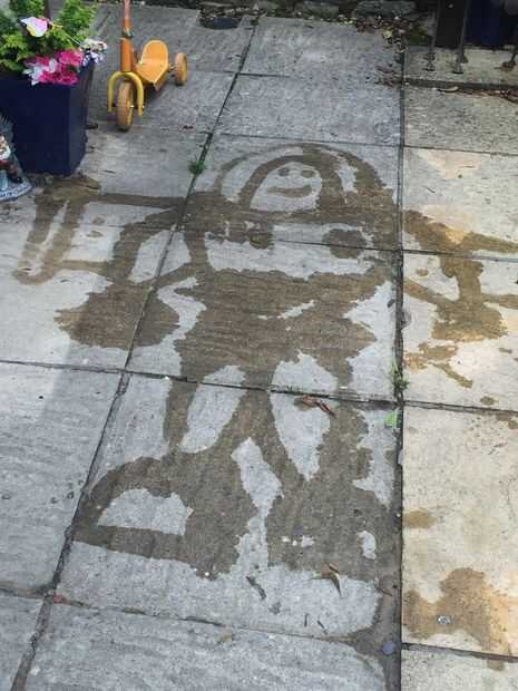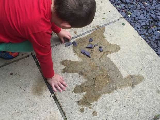 Me sorprendió realmente que él realmente quería usar piedras como ojos y una boca para el cuadro de "Betty" su perro