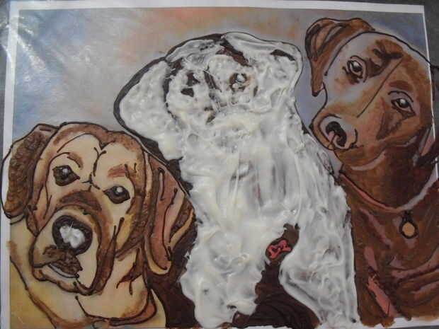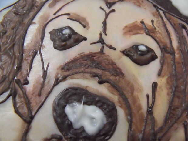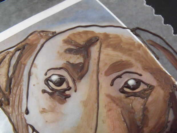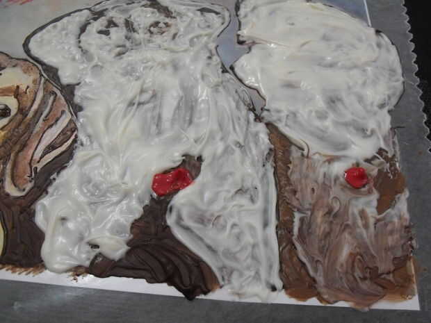 Llené el perro con el chocolate blanco y desde im usando ya decide a hacer los detalles blancos en los otros perros también.