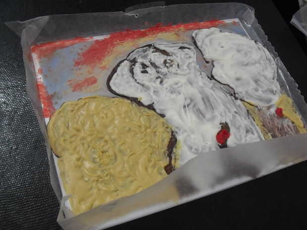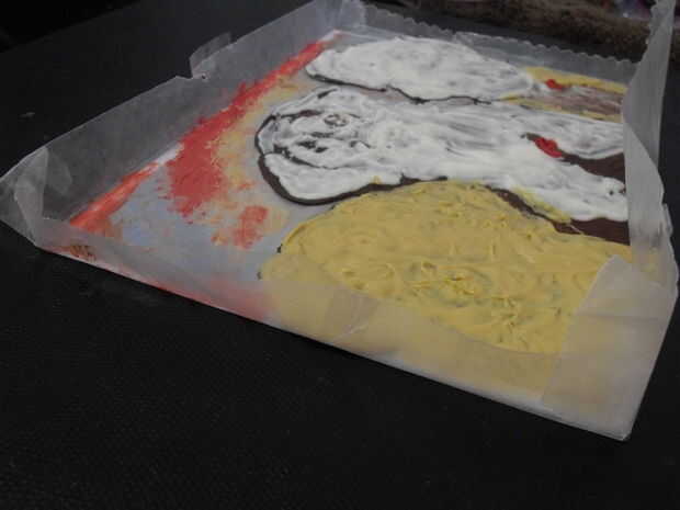 Cuando haya terminado le tiene que acumular una gruesa capa de chocolate en la parte superior para evitar que la pintura de romper cuando le da la vuelta.