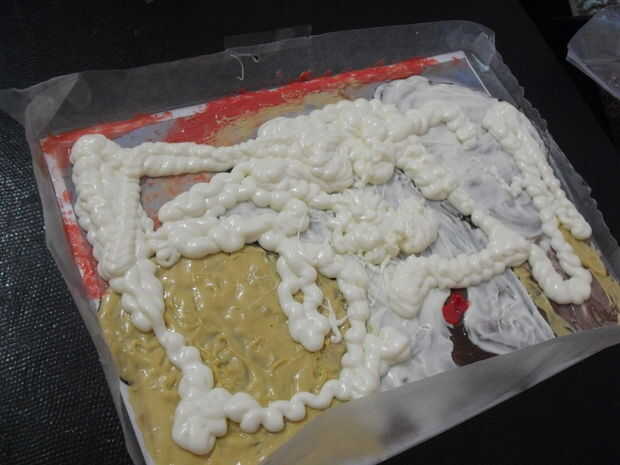 Construir por lo menos 1/4 de pulgada y la ponga en la nevera, cuando se trata de un tirón lo con mucho cuidado retire el papel de cera y disfrutar de su arte.
