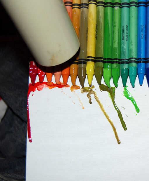 3. Alinee el punto crayones hacia abajo en la lona Asegúrese de que tener suficiente y decidir la colocación del color