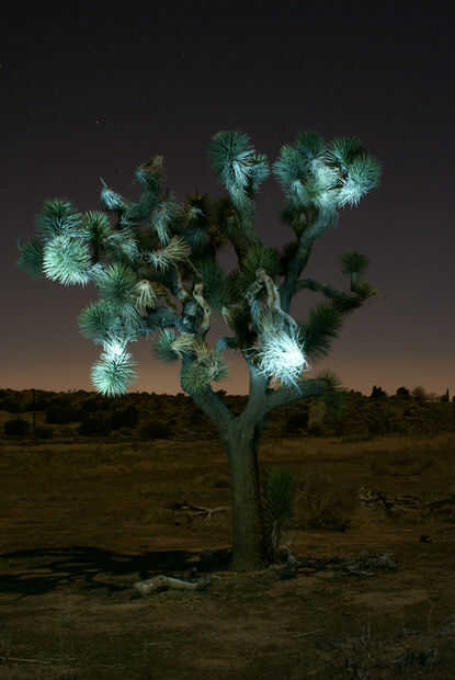 Para esta imagen he utilizado mi atención con una lente azul. En lugar de utilizar trazos 'pop' la luz en sólo un segundo en diferentes partes del árbol.