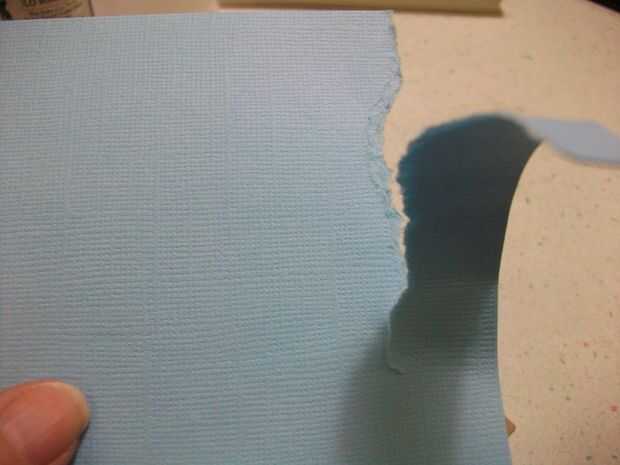 Crear un fondo, rasgando tiras de papel de desecho. Nota: Si está utilizando papel doble cara y quiere tener el desvanecimiento del papel en un lado determinado, levantar el papel con el lado deseado. Comenzar a rasgar el papel tirando hacia usted. Si no desea un borde emplumado, empuje y rasgue la tira de papel lejos de usted.