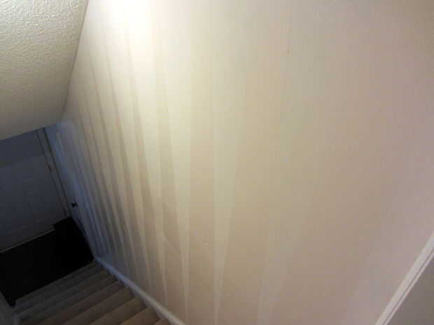 Mi esposa y yo hemos estado considerando pintar el hueco de la escalera durante un tiempo. Para ser más precisa, hemos hemos querido repintar ya que algunos problemas de fontanería desafortunado nos dejaron con un parche grande y feo de yeso sin terminar en el hueco de la escalera.