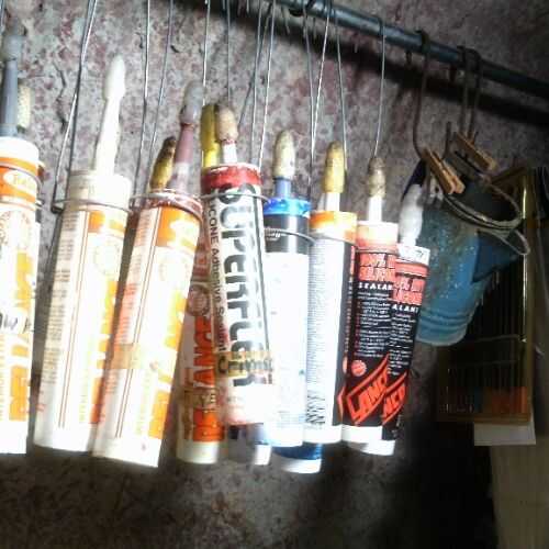 Resulta más fácil y más conveniente para colgar las cosas que les saturan las superficies de la mesa.  Cuelgo los cartuchos de tubos con horquillas de alambre.  Yo doble un gancho en la parte superior para colgar en la pipa, un lazo alrededor del cartucho más abajo y en la parte inferior del cartucho un pequeño gancho que prenda se quede atascada en la parte inferior del cartucho.  Usted sólo Levante el cartucho hacia arriba y hacia fuera para quitarlo.