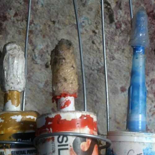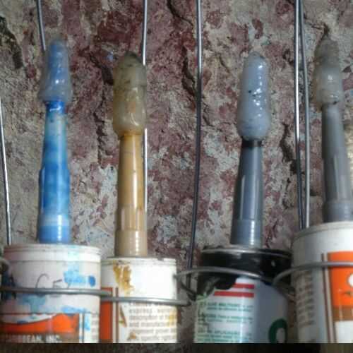Toma un cartucho nuevo de silicona y construir la tapa en la punta del cartucho. Sacar la silicona de un cartucho ya ha sido abierto y hacer cualquier retoque del silicón extruido con cuchillo de paleta de un pintor. Tarda unas horas para endurecer encima de. Tire de ella y hacer más con la misma punta del cartucho. Se necesita uno para cartuchos de cada color de la pintura.