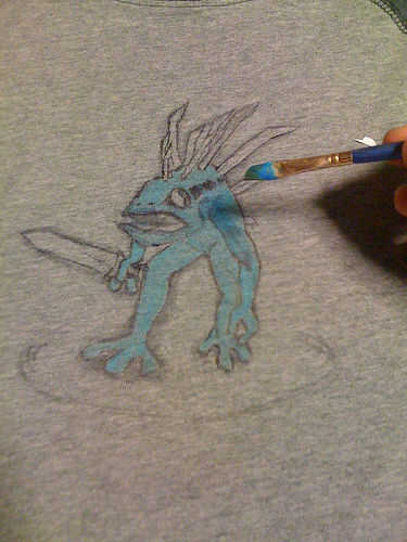 Si opta por muchos colores, te recomiendo comenzar primero con el color principal. Siga con la adición de sombras entonces destaca. Puede estirar la camisa un poco para asegurarse de que el color está en las ranuras de la armadura. Mejor penetración significa mayor durabilidad y color más fuerte. Sí, dije penetración. Dejar de reír.