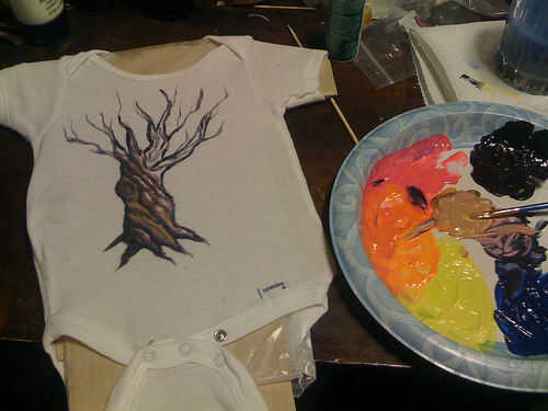 Tenga cuidado cuando usted está tratando de obtener la cobertura completa. Si añades un poco de agua a su color, será más fácil presionar en las fibras de la camiseta, pero también es más probable que sangran. Ayuda a tocar el cepillo a la toalla de papel después de cargar con pintura y antes de pintar la camisa. Blots cualquier exceso de agua y le muestra cómo mocosa/probable sangrar la pintura es.