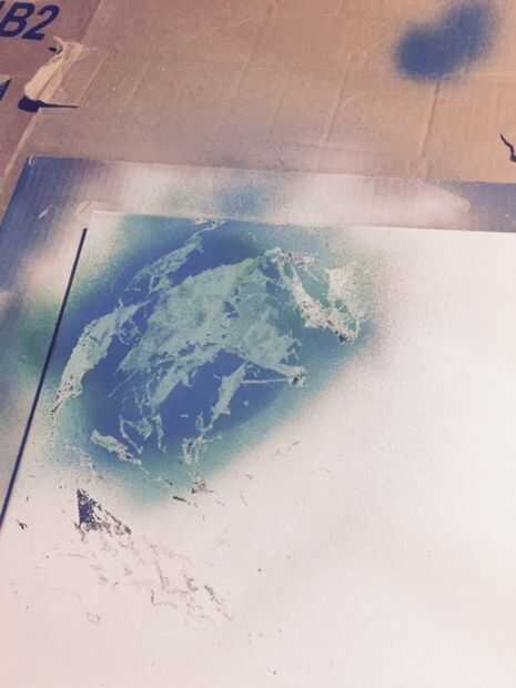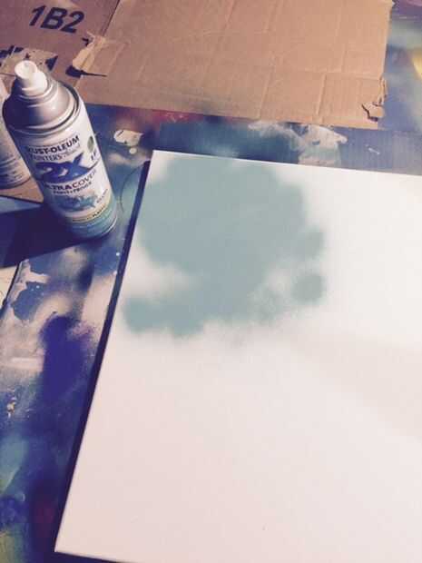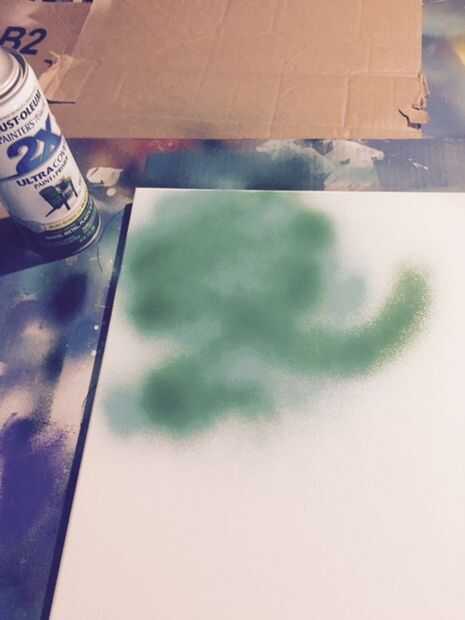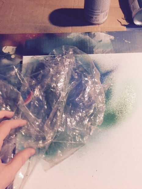 Lo primero que quieres hacer es planificar su trabajo y establecer un color de base. Decidí poner un planeta en la esquina superior izquierda para dejar espacio para la galaxia. Empezar por colores de capas en la zona que desea el planeta al ser. No tiene que ser organizado como usted puede ver que sólo esporádicamente pulverizadas. Una vez se capa la pintura toma su periódico arrugado o envoltura de plástico (yo usé el abrigo que la lona) pone sobre la pintura y extienda suavemente. Rápidamente quitar la envoltura y se pelar lejos de la pintura para darle esa textura. Si tiene una textura que te gusta, coloque el objeto redondo sobre el área que más tarde se convertirá en vuestro planeta. Puede tomar algo de práctica para conseguir un look que te gusta pero se puede siempre que pintar en blanco y tratar de nuevo.