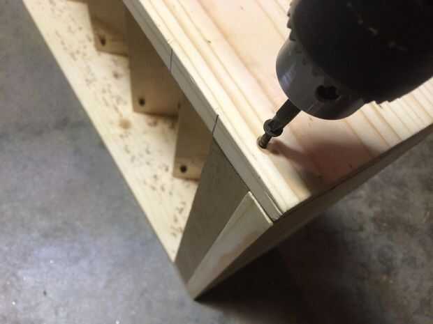 Comencé poniendo mi sierra de mesa a 45 °. Entonces tomé un pedazo de chatarra tenía por ahí que es de 1/2 "x 2" x 28 "y rasgado por la mitad. Esto me dio las dos mitades de mi Cala francés. A continuación, marcado y corte el extremo que se acopla a la rejilla de la pintura de aerosol a la longitud. I prueba montar la Cala francés en la rejilla y luego contador hundido y atornillada en su lugar. Entonces sólo utilicé mi avión de mano para hacerlo totalmente al ras con las placas circundantes.