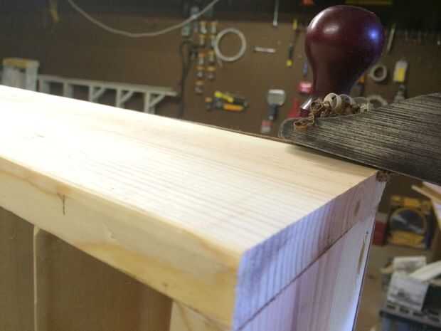 Me di cuenta en este paso aunque mi estante se inclinó ligeramente y así sacó mi aglomerado en un solo punto en la parte posterior. Para solucionarlo simplemente usé mi avión de mano para llevar la madera a ras con los lados.