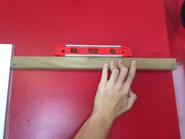 Tomé la recepción Cala y pretaladrado y contador hundido dos agujeros en los puntos exactos que necesitaban para montar en la pared. Luego perforé un tornillo en la pared para sujetarlo a la altura correcta. Luego usé un torpedo de un nivel a la Cala recepción y finalmente perforó el tornillo derecho en su lugar.