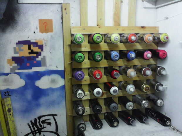 Esta bandeja fue construida por necesidad, pintar mucho con las plantillas y han acumulado una amplia colección de pintura. Por desgracia el almacenamiento es un problema. Los estantes funcionan bien pero las latas tienden a se mezclan y es difícil decidir cual color funciona mejor.