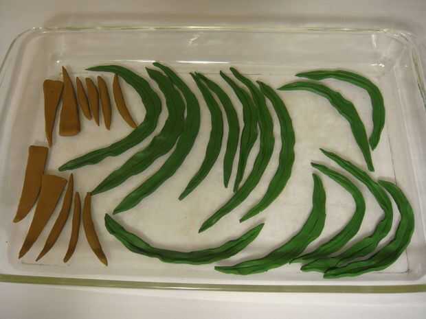 lo que necesitas: pintura de arcilla marrón, oro, pintura. Brush(Paintbrush)Paso 1: Tomar una gota de barro marrón y forma en forma de rectángulo con esquinas redondeadas curvas. Use la parte posterior de la brocha para hacer ranuras en los lados int
