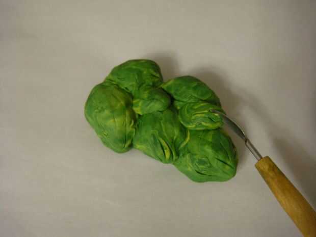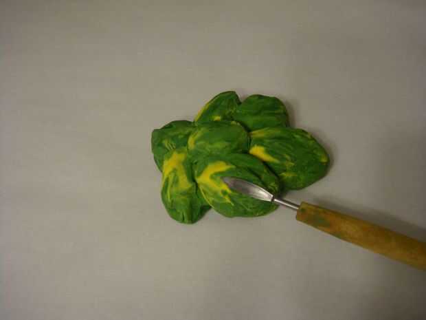 Utilizando una herramienta de arcilla, prensa plana final en la arcilla a forma los cocos.