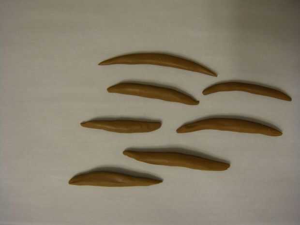 lo que necesitas: pintura de arcilla marrón, oro, pintura. Brush(Paintbrush)Paso 1: Tomar una gota de barro marrón y forma en forma de rectángulo con esquinas redondeadas curvas. Use la parte posterior de la brocha para hacer ranuras en los lados int