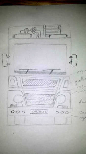 En primer lugar traté de dibujo de un camión y todos los elementos para implementar más adelante. Mi hijo aprobó todas las partes del proyecto, por lo que mi motivación era maximizada ;-)