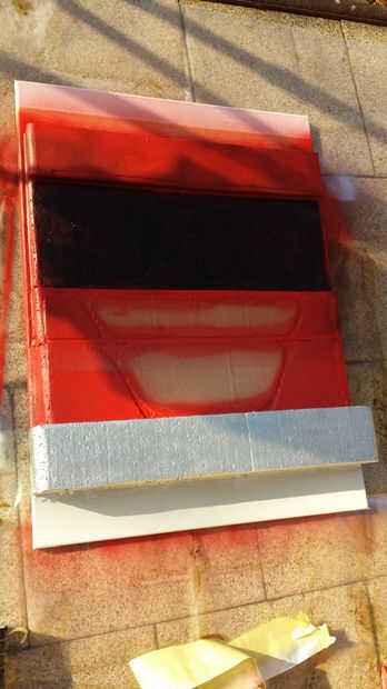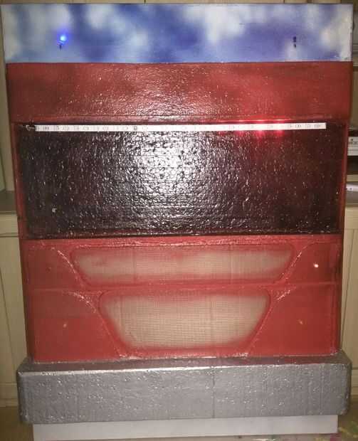 Así que pinté todo, rojo el carro, la barra frontal de plata, negro interior y ruedas, blanco y azul el cielo.