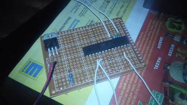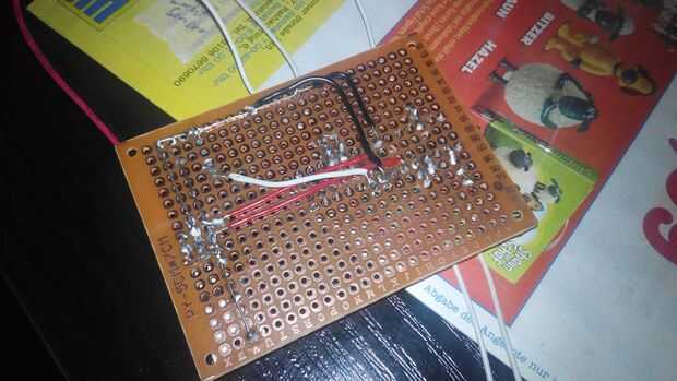 Luego me mudé todo en un tablero del PWB y soldadas todas juntas. Esta es mi primera vez todo en una Junta de soldadura. Utiliza sólo dev breadboards hasta ahora. Así que suave con mis conocimientos de soldaduras :-)