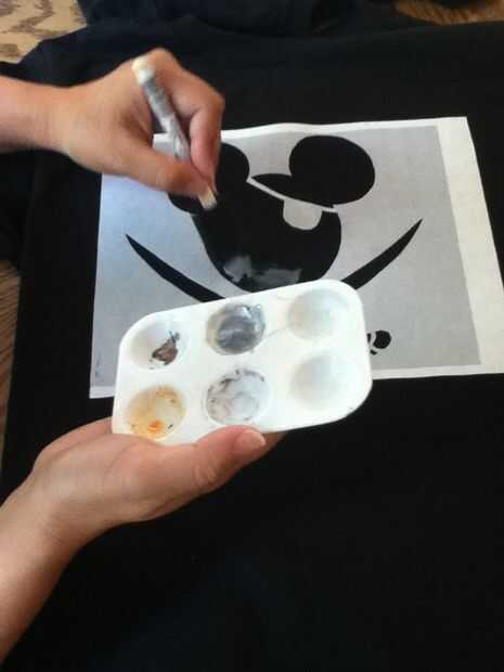 Pintar una capa de pintura de tela en la plantilla y ser tan sucio como te gustaría porque se mostrará sólo el recorte de piezas! Por lo general, una capa de pintura de la tela no es suficiente, así que usted puede Agregar una segunda o tercera capa como lo hice.  Asegúrese de que pinte la imagen entera uniformemente así que no más oscuro o más claros en una parte del diseño.