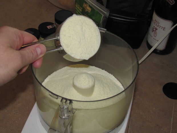 Dar a estas cosas un giro en el procesador. Va distribuir el bórax así como descomponer las partículas más grandes de leche en polvo.