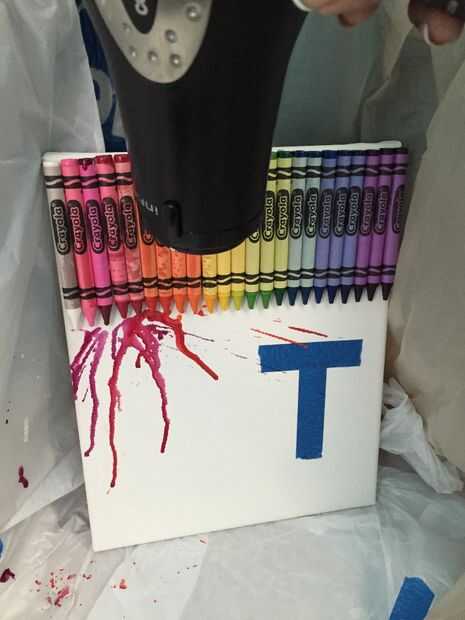 Punto el secador hacia abajo y empezar a calentar las crayones. Mantener fundir las ceras hasta llegar la pintura deseada.