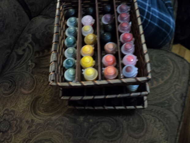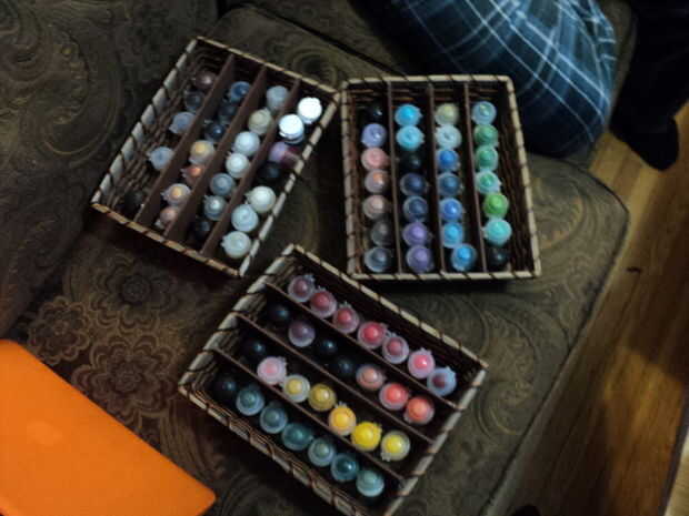 mis pinturas tienen un hogar y es bonito y decorativo, que pueden ser colgados para arriba o situado en una estantería o apilable y pueden colocarse perfectamente en un montón