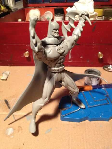 Puede omitirse este paso. Algunas personas sólo pintura la acción figura estrecho de salida pero me gusta empezar con una pizarra en blanco. Prime la figura de acción entera con algún tipo de pintura de la cartilla. Asegúrese de poner en capas finas de luz. Gruesos abrigos voluntad glob para arriba y dejar rayas. Empezar pintando las más difíciles para llegar a las zonas. Para mí esto era la parte posterior del cabo y debajo de los brazos. Plantean la figura de una manera que usted puede pintar en todas partes por ejemplo con los brazos de figuras en el aire.