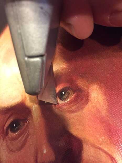 quiere arrastrarse a los huéspedes una manera sutil pero inquietante? Sigue este Instructable y hacer cualquier pintura que mira como hay alguien al acecho detrás de él observando la habitación.Paso 1: Marcar y cortar los agujeros para los ojos Paso