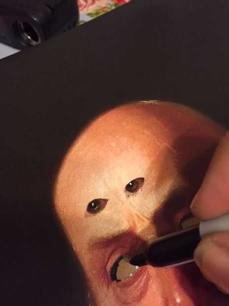 Usando un color de rotulador negro en alrededor de donde usted con solo recortar los ojos. Aunque cambia el aspecto del retrato, da un mal aspecto agradable.