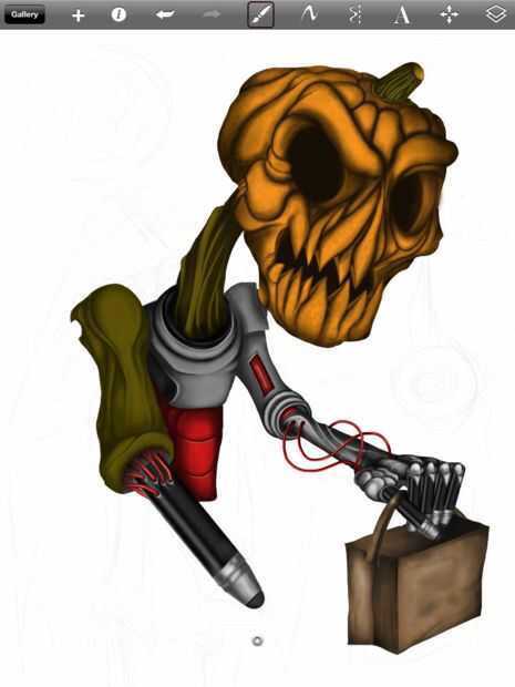 Truco o tratamiento requiere un bolso para tus golosinas, así que empezó a dibujar este chico una bolsa de papel (y la sección media roja ha añadido a su torso.
