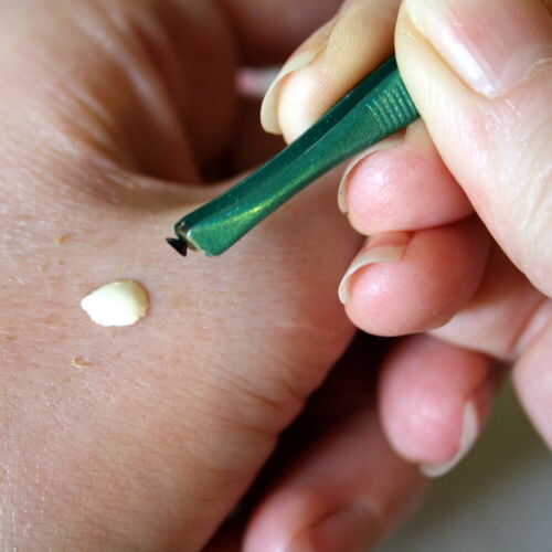 Exprimir un poco pegamento en el dorso de su mano no dominante.