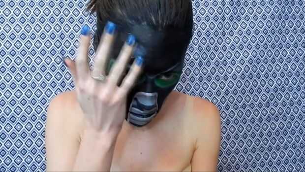 Esto es un poco espeluznante.Paso 1: esquema Primero tomar un tiempo delineador de ojos y esbozo su diseño.Paso 2: Base Luego tomar este metálico azul cubre su cara dejando el lugar donde los ojos se van claro.Paso 3: La base del ojo Utilizando un lá