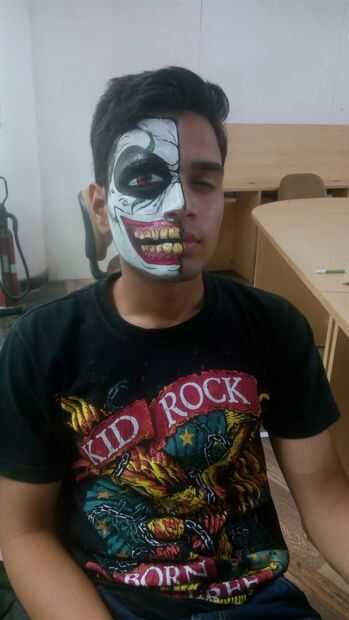 Esto es un poco espeluznante.Paso 1: esquema Primero tomar un tiempo delineador de ojos y esbozo su diseño.Paso 2: Base Luego tomar este metálico azul cubre su cara dejando el lugar donde los ojos se van claro.Paso 3: La base del ojo Utilizando un lá