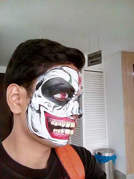 utilicé un Kit de disfraces baratos con cinco palos de maquillaje me costo menos de $2 en un cerca por tienda y mi hija esta vez porque mi esposa me dio un mal rato!!!Primero traté de dibujar una boca grande en un trozo de papel hasta que tengo una i