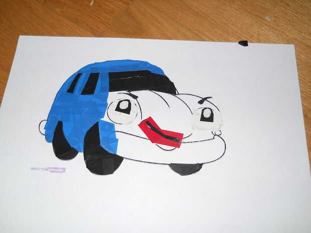 Ahora toma la cinta azul y colocarlo exactamente donde a diferencia de la cinta roja el se utilizó para la boca. Cuando haya terminado debe ser el resultado final como se muestra en las fotos.