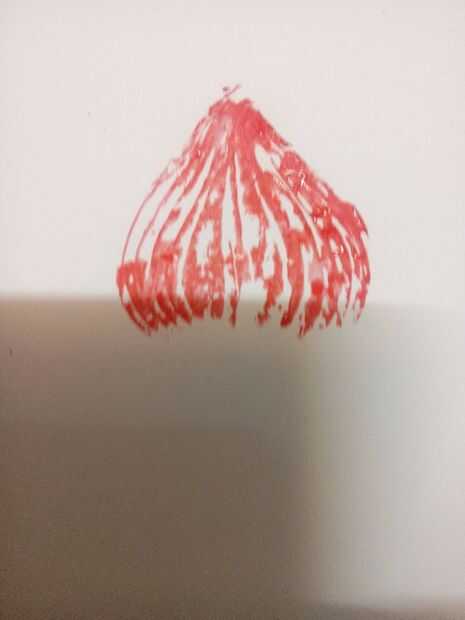 Después de realizar el corte adecuado, pintar el color en ella. El contenido de agua de color (cheque) debe ser óptima. Poner la cebolla en el papel y mantenerlo presionado durante 5-10 segundos.