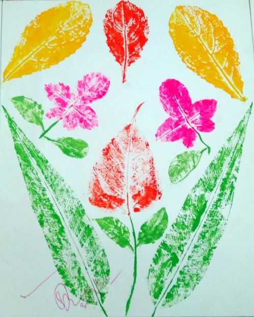 5. repetir con la misma hoja y diferentes hojas. Y mediante la adición de diferentes tipos de hojas, puede construir un bonito patrón o diseño para papel de regalo, tarjetas, una pintura o cualquier otro proyecto de arte de papel.