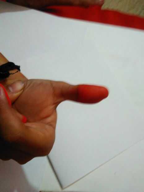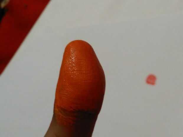 4. ahora Coloque el pulgar en la hoja de dibujo y llenarlo. Aplicar el color después de cada impresión.