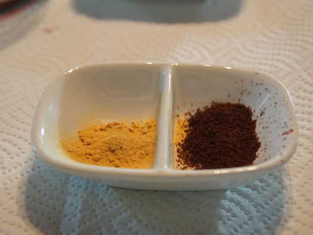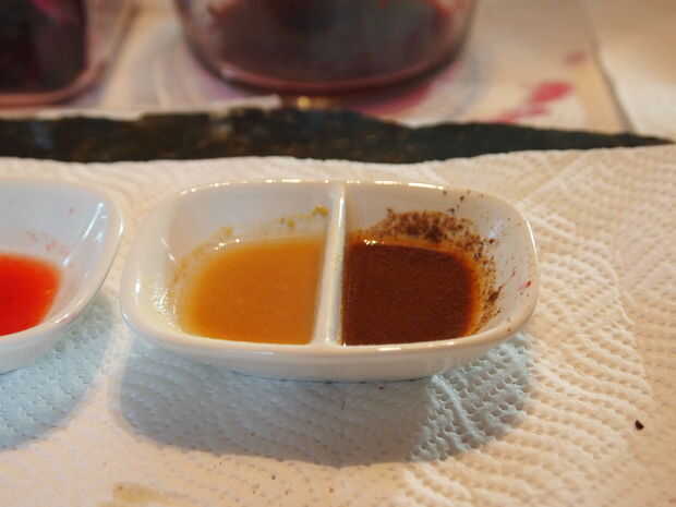 Para crear un bonito color amarillo grueso, utilicé cúrcuma. Jengibre funciona también pero no tanto como cúrcuma. Con la cúrcuma, también puede mezclar otros jugos de baya para hacer una gama de colores.