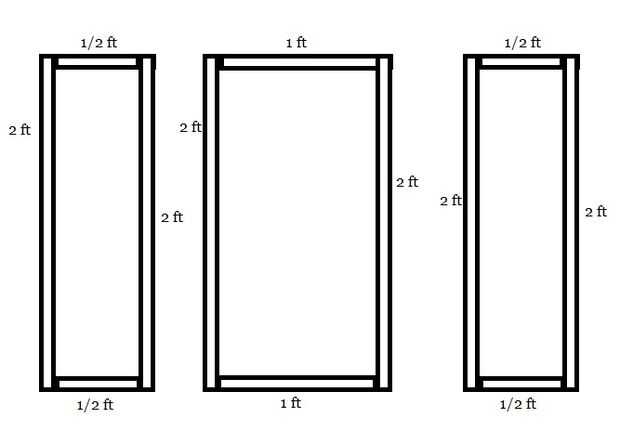 Cortar las varillas en piezas, 4 piezas de 2 pies, cuatro pies ½ y dos piezas de 1 pie. Hacer tres marcos con pegamento para madera – ½ por 2 y 1 por 2. Asegúrese de que el pegamento esté completamente seco antes de pasar. Si quieres, pero la madera puede partirse y dependiendo de qué tipo de madera es reforzar el marco con grapas. No utilizar grapas.